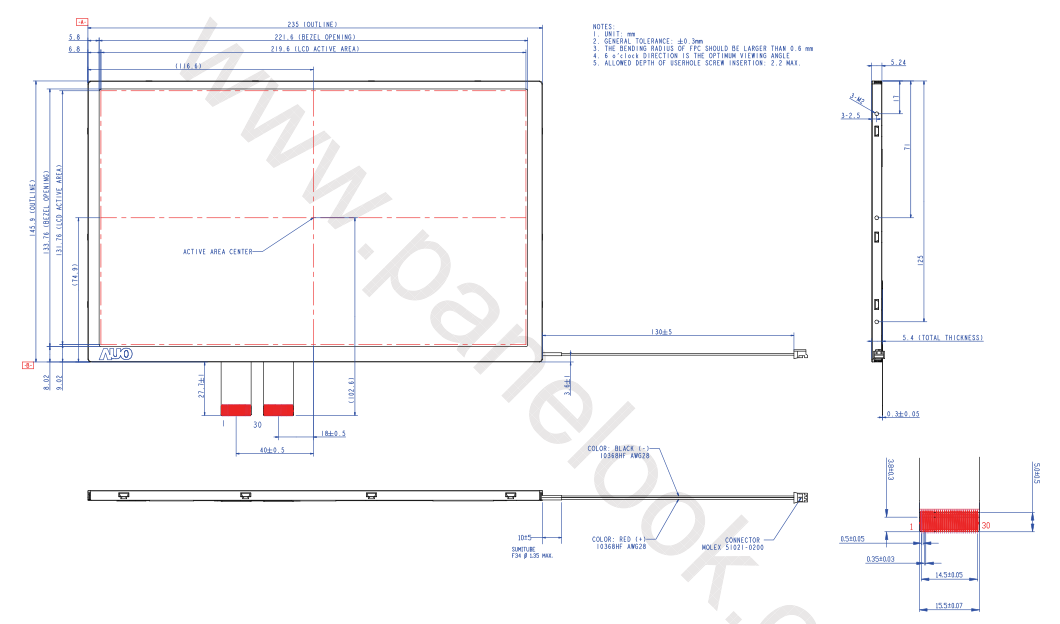 面板尺寸: 235 x 145.9 x 5.4 mm